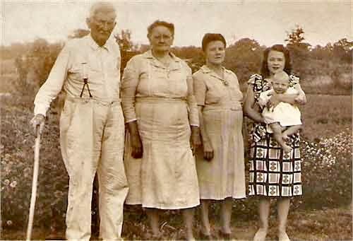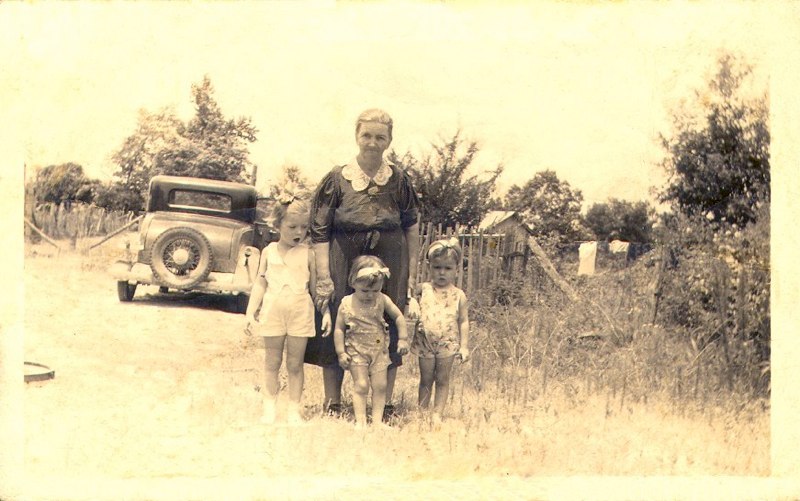 Frances Clark and Margaret Ann Bradley, Jeanine Bradley with grandmother Ora Lee Hartley Hill (ca. 1939) |