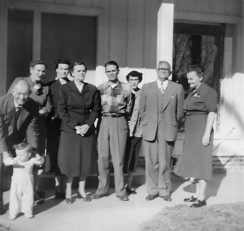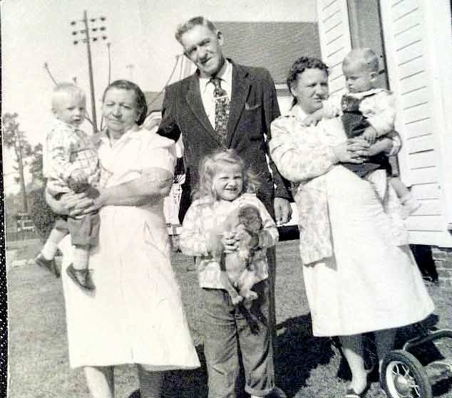 FC -Frances Cronin in caption below. 1951-52...Mississippi...Little Gene Hill, Old Dad (FC Step-Paternal Grandfather), Mommie (FC Father's Mother - FC Paternal Grandmother), Lou Lou (Aunt Con's and Uncle Vernon's Oldest Daughter - FC 2nd Cousin), Aunt Con (FC Father's Mother's Sister -FC Great Aunt), Daddy, Mama, Uncle Vernon (FC Father's Mother's Brother-In-Law), Granny (FC Mother's Mother - FC Maternal Grandmother) — with Annie Chadwick, Abigail Hardin and Faser Hardin (Caption continues) FC=Frances Cronin |