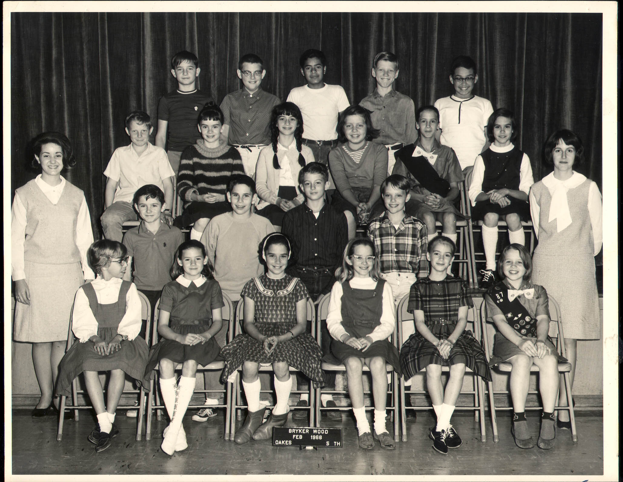 1966-67 Fifth Grade Brykerwoods Elementary Class Front Row: Jane Winnie, Deborah Alderman, Lynn Snider, Vicki Ballard or Alison Palmer, Debbie Storey, Denise Edelman, Marianne Frazier, Laura Coffey Others in class that year: Stephen Wehring, Joe Ruiz, Pat Branham