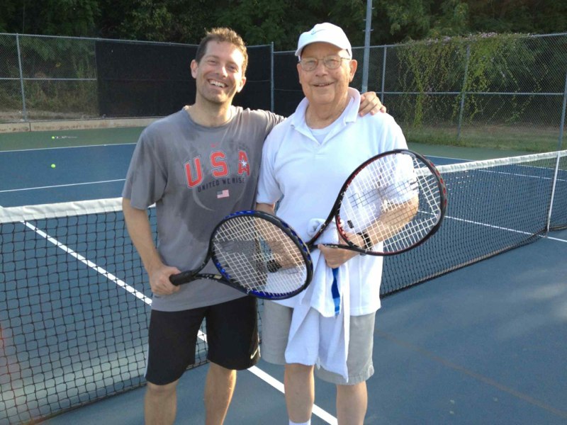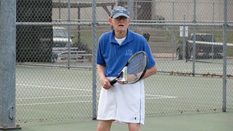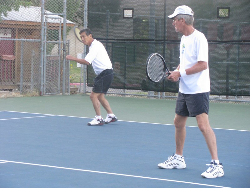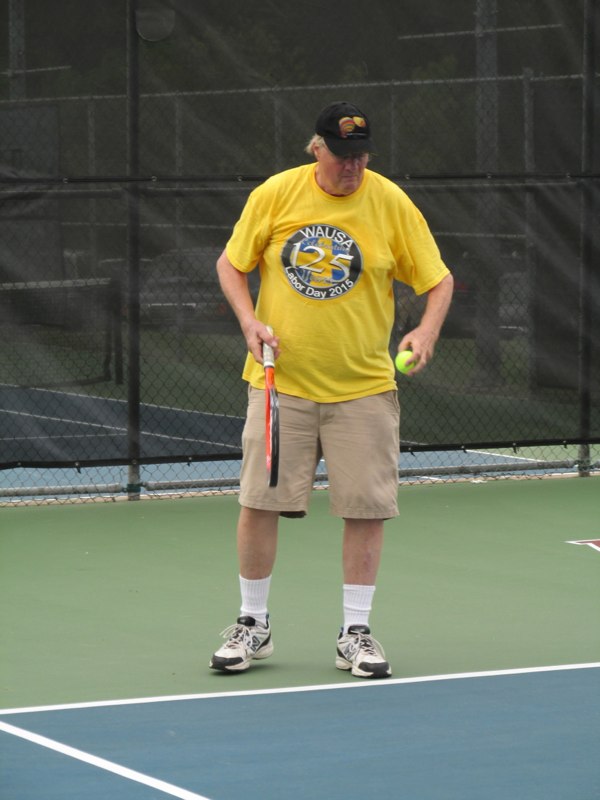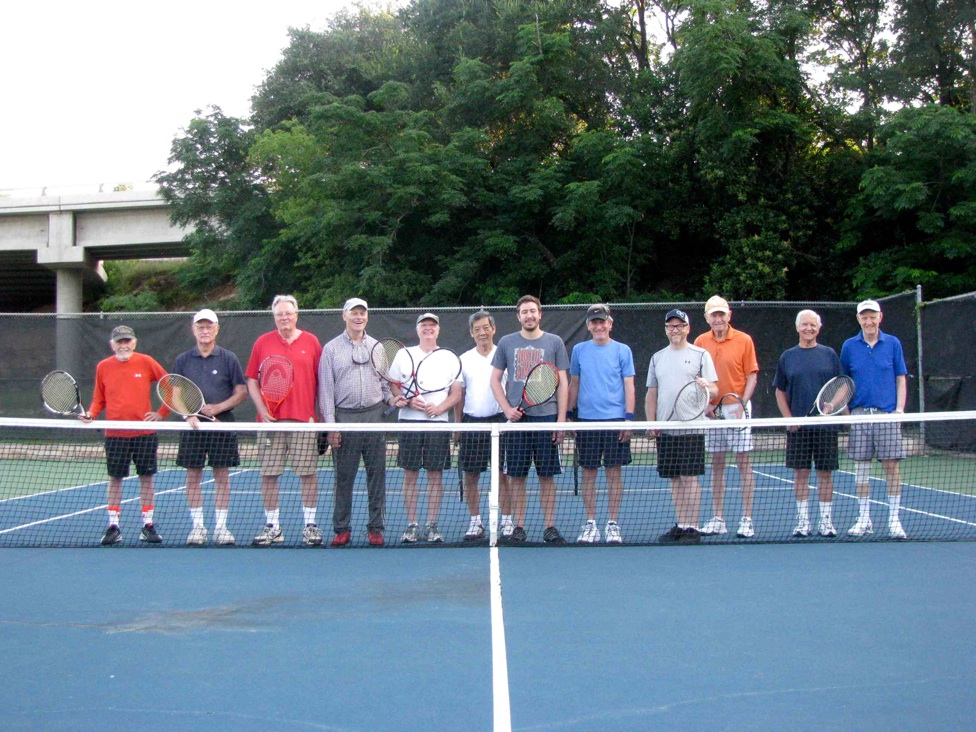 L to R: Austin Gleeson, Jim Harlow, Roger Bengtson, Mark Sullivan, Charles Thrash, Vernon Wong, David Racino, Dick Rew, John Moore, Paul Landry, Mel Oakes. June 7, 2016, Austin High Tennis Courts