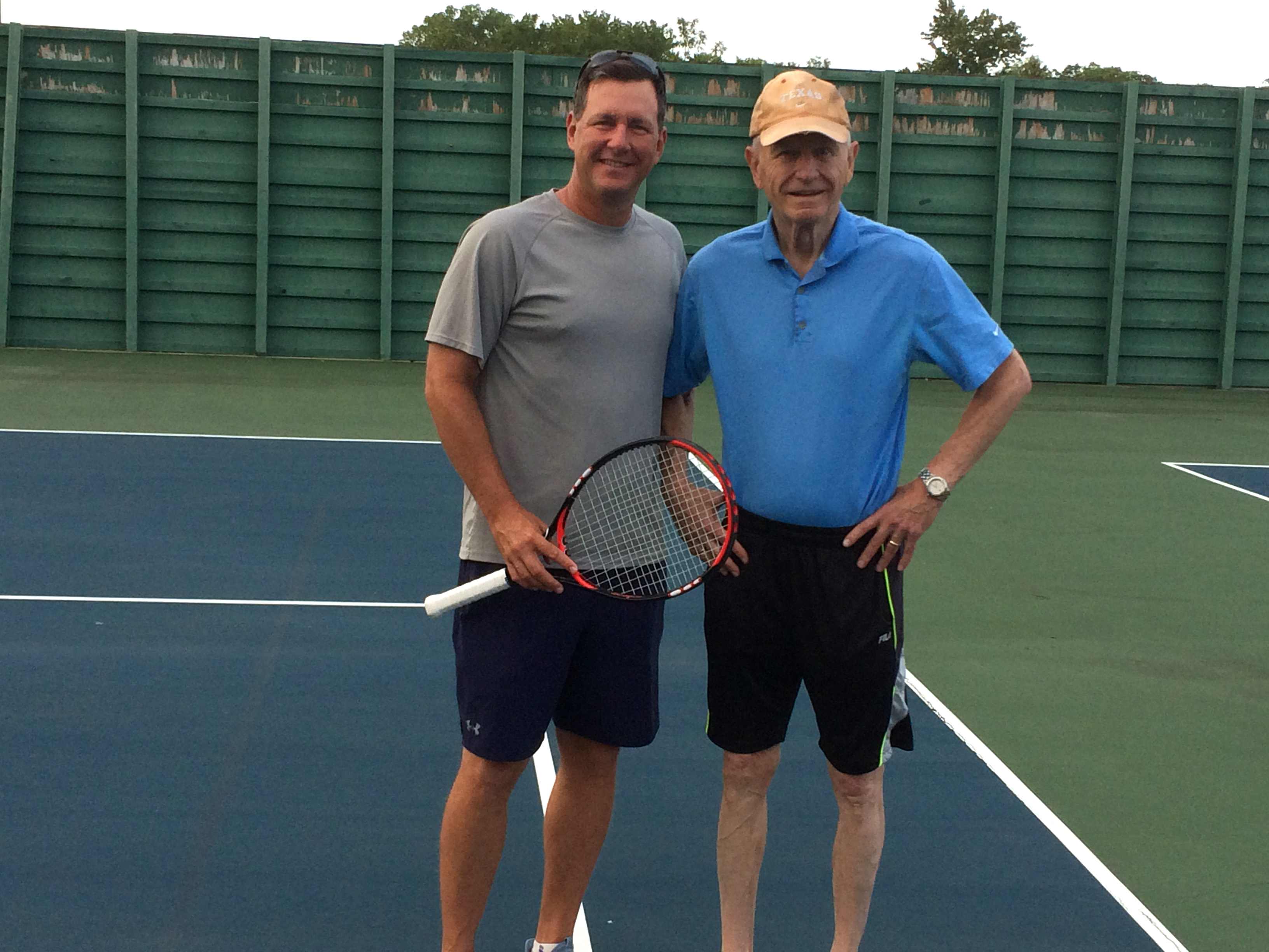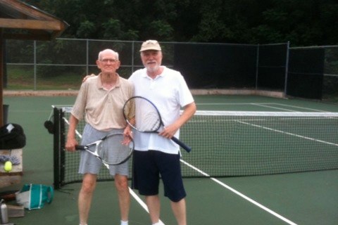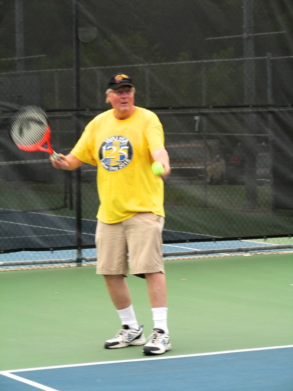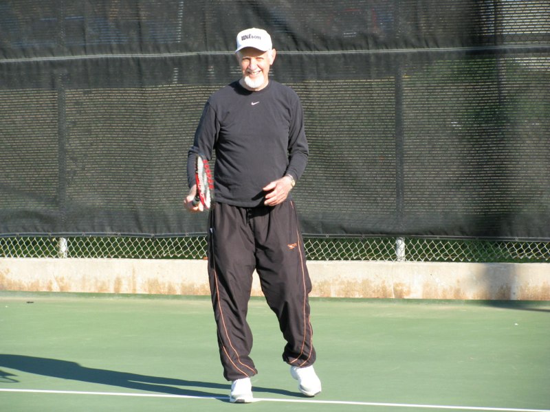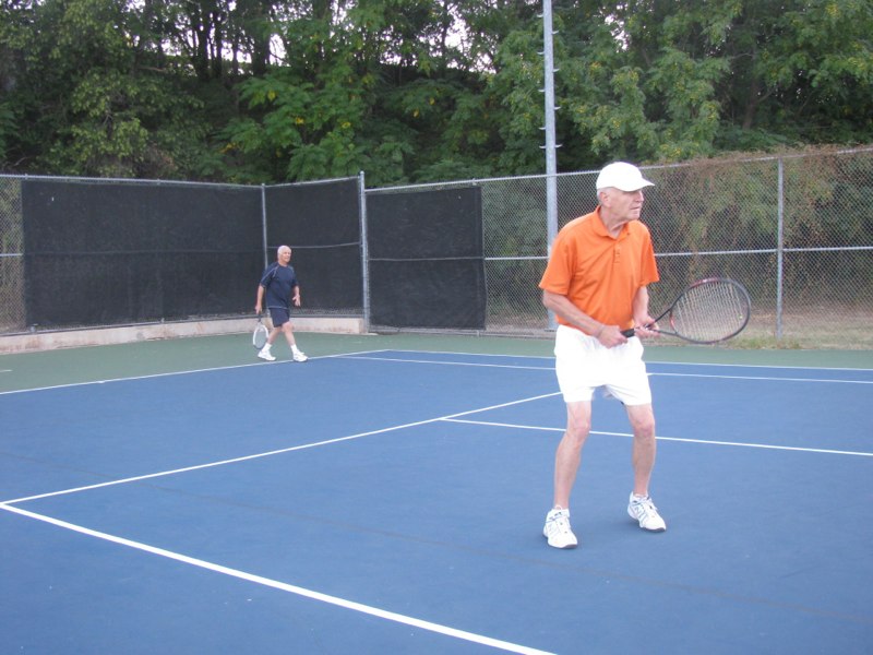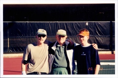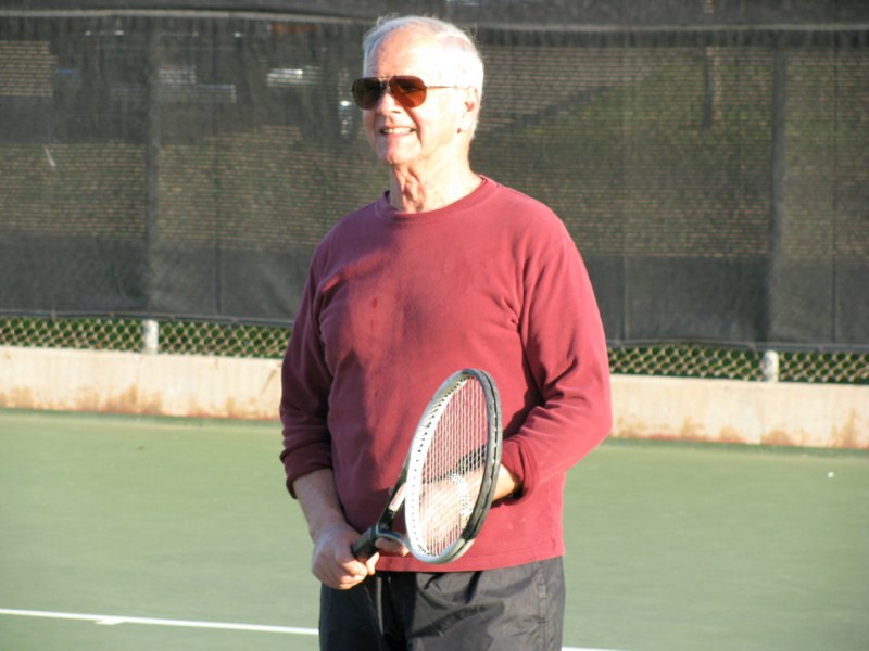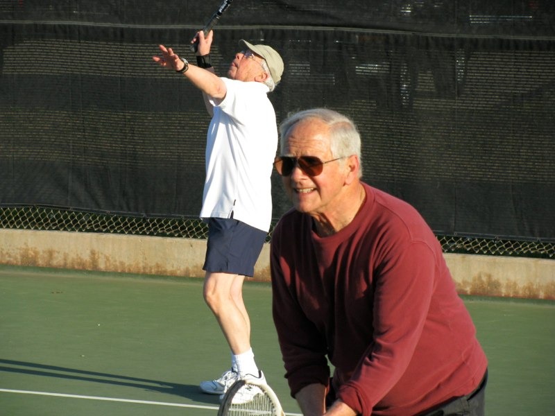 In 1974, Mel Oakes expressed his boredom with jogging to a seven months pregnant neighbor, Donna Jobe. She quickly suggested that he consider tennis. Since he had never played, she loaned him a racquet and took him over to the courts at Zilker School and showed him a few strokes, fortunately avoiding a premature delivery. He was hooked. A Guatemalan graduate student in physics at The University of Texas, Carlos Cajas, offered to hit with him on Saturday mornings, which they did for several years while Carlos completed his dissertation. John Towery and Garry Cole, minister and member respectively of the Congregational Church of Austin, both mentioned that they played and maybe we could have a match sometime. Garry, a professor in the UT Botany Department, enlisted Tom Mabry, then chairman, to play with us. We played at 7:30 AM Tuesdays and Thursdays at the 51st Street UT Inter-mural Courts. Eventually Tom Mabry’s obligations were such that we needed to find a replacement. John recruited Rose Lancaster, founder of Extend-a-Care, and we both convinced Ben White (pediatrician), a member of John’s congregation, to join us. Ben died in 2011 and Rose in 2013.( See their eulogies & more at the end of this page.) We would recruit pickups such as Ches Towery, John’s son, David Bartholomew, seminarian student, Carlos Cajas, physics grad student, Rollin Russell (UCC Associate Conference Minister) and John Camden, (UT Data Processing Staff). During this time Mel also played in the Austin Tennis League with the Headbands, captained by John Murphy, a professor in UT Advertising Department.
