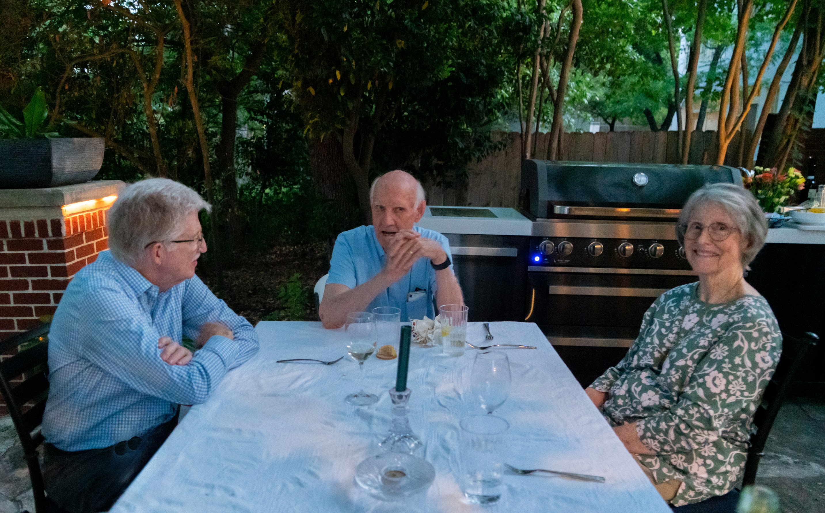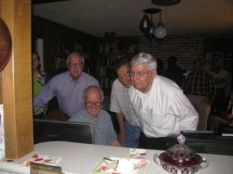 On May 11, 2025, Mel Oakes, a charter member of the group turned 89. Kate Monahan and Mike Mullen threw him a birthday party and generously invited a number of his friends. The photos below, taken by Kate Monahan, (except for one by Pat Oakes), are from that party. |