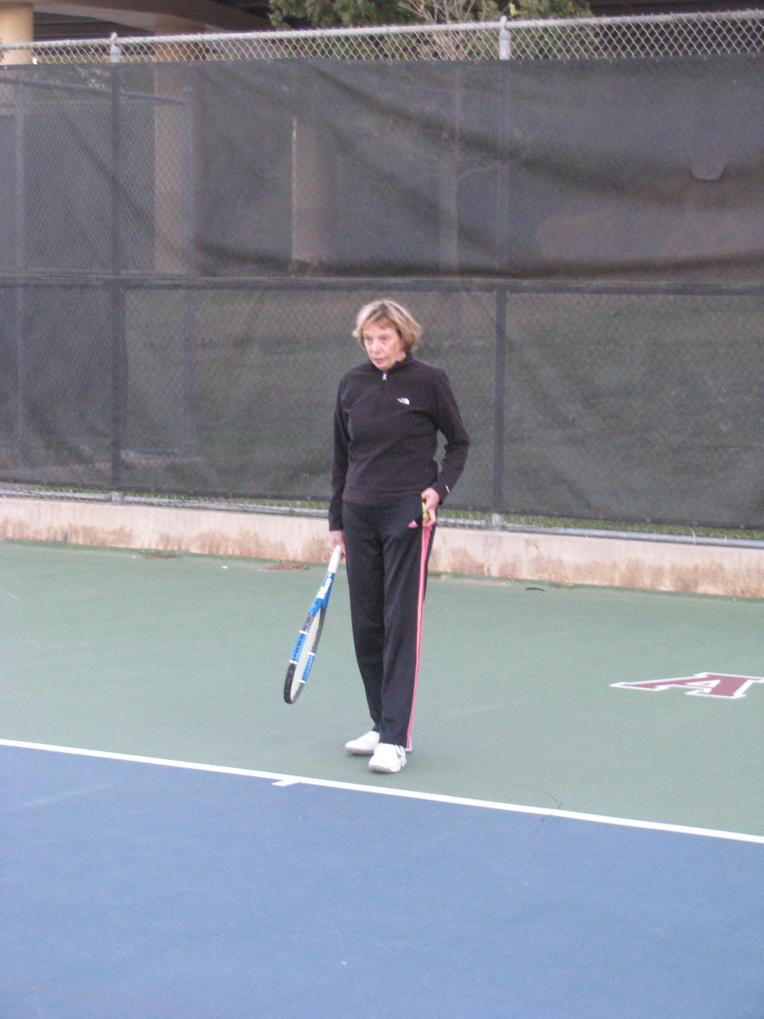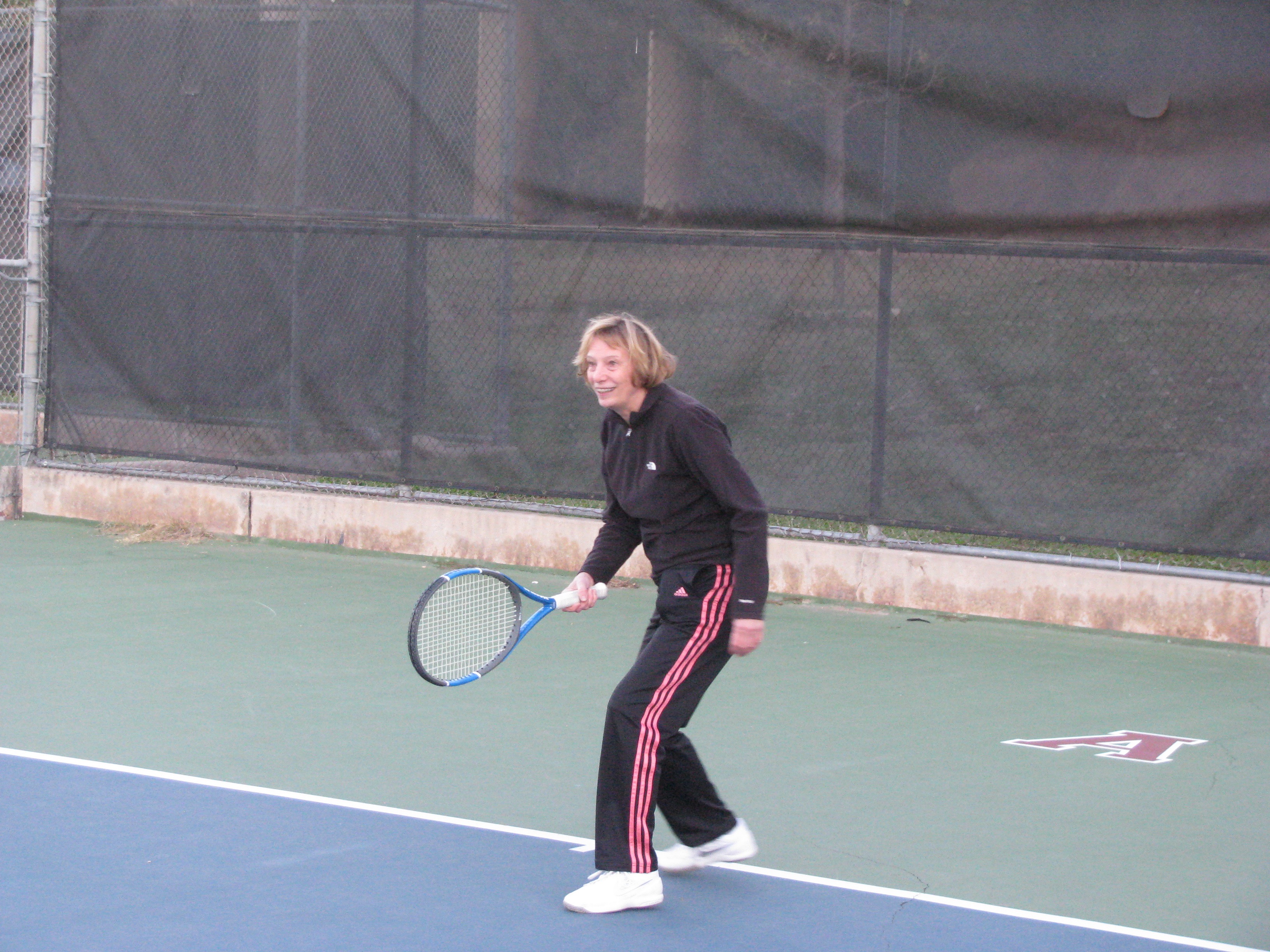 In 1989 John had performed a wedding for Gordon Flack’s daughter and son-in-law Charles Thrash. Gordon, who was retiring from the Higher Education Coordinating Board, had mentioned to John that he played, so he joined us. A 1995 picture at right includes early players, L to R: Mel Oakes, John Towery, Garry Cole and Gordon Flack. This group, including Rose Lancaster, continued for a number of years, eventually shifting to Austin High when UT enforced the staff or student requirement for using their courts. On one occasion Rose scaled the 10 ft high wire fence when UT locked us out one morning.