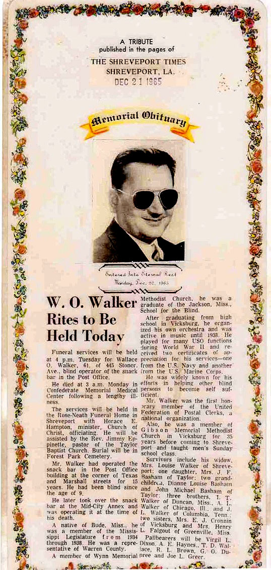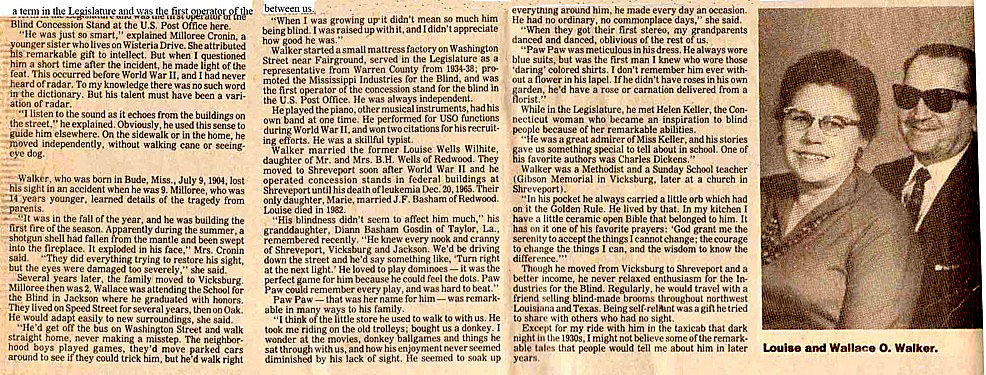 Wallace and Louise Walker were friends of Fred and Margie Oakes. Wallace had a mattress factory in Walterville, MS. Despite his blindness he play piano and was very outgoing and liked by everyone. Their daughter Marie was a beauty at Redwood High School and a beautiful person also. She and her granddaughtr generously provided a number of the photos seen here.