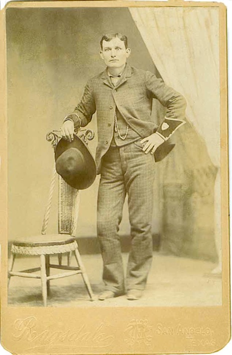 Picture above was taken by McArthur Cullen Ragsdale, pictured at right. A professional photographer arrived in San Angelo in 1874. McArthur Cullen Ragsdale was born in South Carolina and moved with his family to Texas in search of business opportunities. He opened a photography shop in San Angelo, but he worked as an itinerant photographer for a number of years. As San Angelo grew, he stayed closer to home. This portrait show Ragsdale in his later years, when he still was resident of San Angelo.Ruffini and Ragsdale provided a sophisticated and artistic element to the growth of the city. (From Images of America: Early San Angelo)