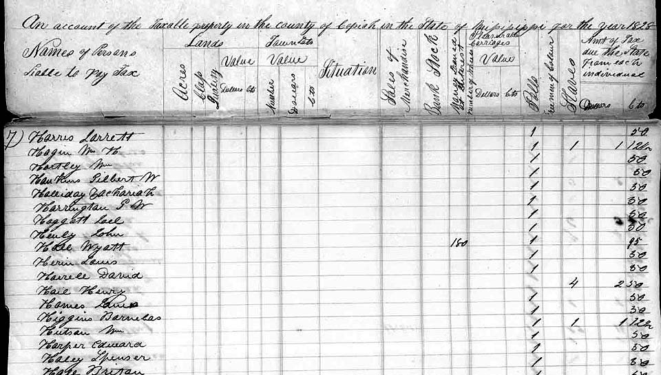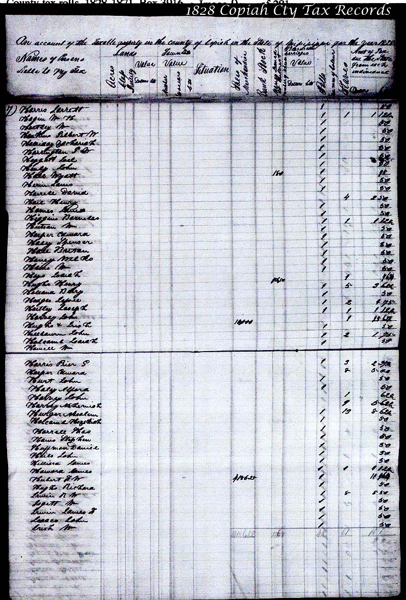 Frances Cronin found that on September 23, 1842, there appeared an announcement of a bankruptcy of a William Hartley in the Weekly Mississippian, a Jackson newspaper. Mr. Hartley lived in Copiah County. The clipping is at right. In the previous paragraph, we noted that the 1840 Census had 19 people in the William Hartley household, suggesting that he was prospering. How he fell on hard times was a question worth pursuing. Pat Oakes suggested trying to find what were the economic problems during that time. Returning to the newspaper, I discovered that there were 60 such notices on the same page. These covered a period of about two months and included mostly individuals from Hinds, Copiah, Madison and Adams counties. Some research revealed that these bankruptcies were accompanied by thousands and thousands of such filings across the United States as a result of the "Whig Bankruptcy Act of 1841." This Act, the first major bankruptcy legislation enacted by the US Congress was a result of the Panic of 1837 which led to a major downturn in the US economy and produced a crippling depression. The "Panic" began as a result of the British banking system efforts to provide a more balance budget for their economy. They raised interest rates and demanded hard currency for transactions. In order to compete for funds, US banks followed suit. The reduction in credit led to reduced purchases of cotton and goods from the United States. The South was hit particularly hard. This provided the Whig party an opportunity to win a national election. They made a bargain with political interest supporting new bankruptcy laws in exchange for their votes. It was successful and they won the election. All over the country individuals could now declare voluntary bankruptcy and free themselves from debt. However, among the creditors, the Act was very unpopular and efforts to repeal it began immediately and it was finally repealed in 1843, though some of its features survived. A person declaring bankruptcies could retain their furniture and household goods. William Hartley chose to avail himself of this opportunity and surely lost his land.