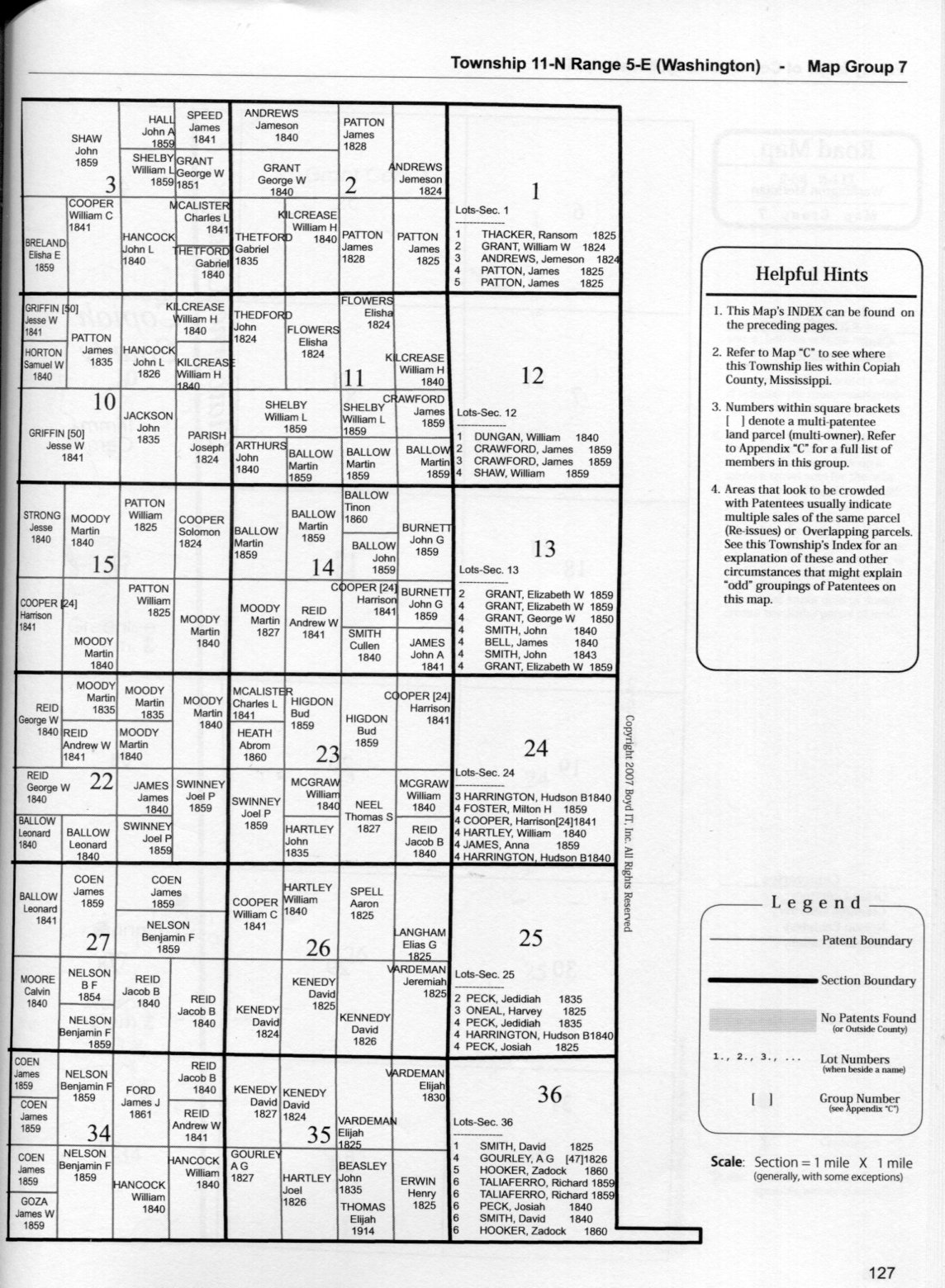Map showing John Hartley Property: Block 19. Copiah County MS Tax Records |