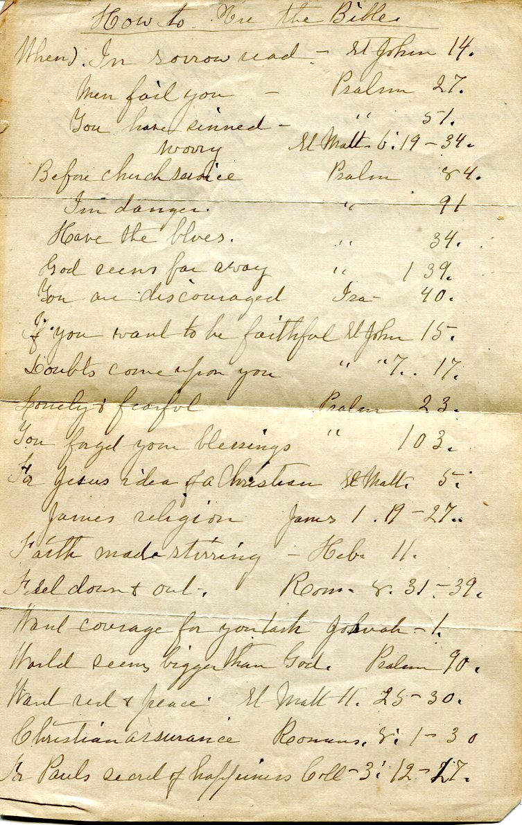 Isabella Smith Winter Bible, her reading guide |