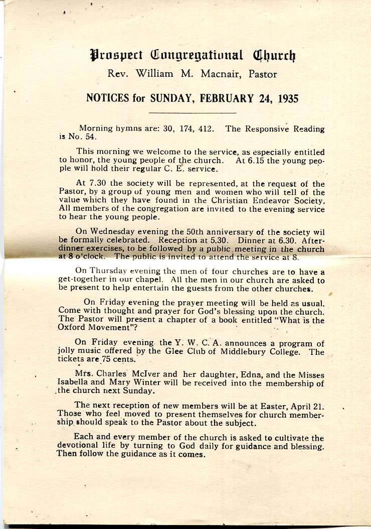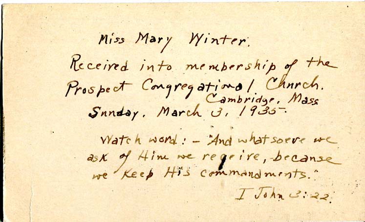 Isabella Smith Winter and Mary Clark Winter Church Program announcing membership. |