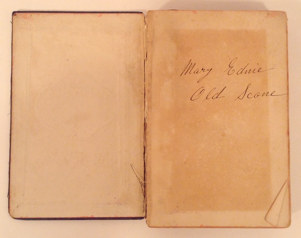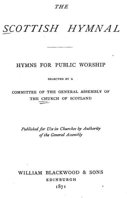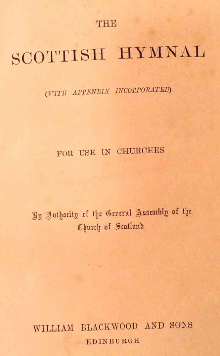 This hymnal, owned by Loel and Marie Raymond, originally belong to Mary Ednie of Perth. The title page above has no copyright date on it. The wording is very similar to the 1871 and 1885 versions seen here also. The 1871 version, published by Blackwood, is missing some of the wording that is present in the 1885 version. The 1885 version however is published by T. Nelson and Sons. It would suggest that the Ednie hymnal was published sometimes between 1871 and 1885. The numbering of the hymns in the 1885 version matches perfectly the Ednie hymnal while the 1871 has small differences..