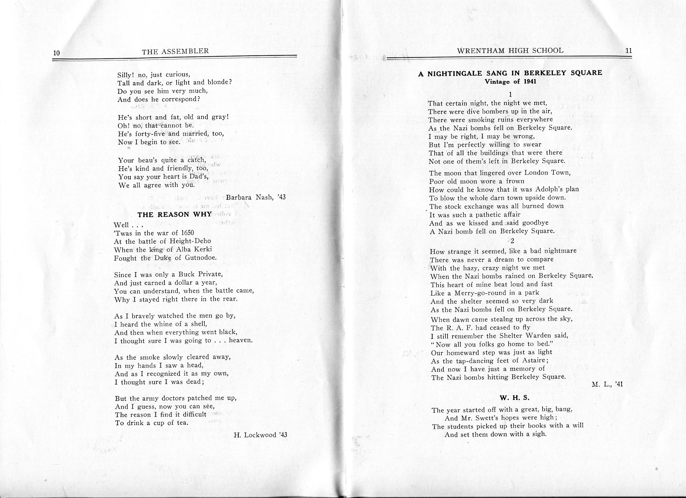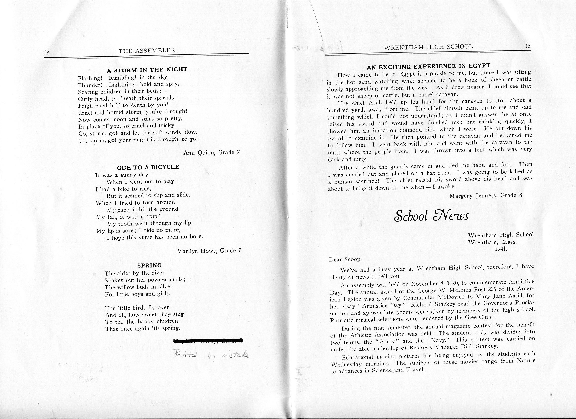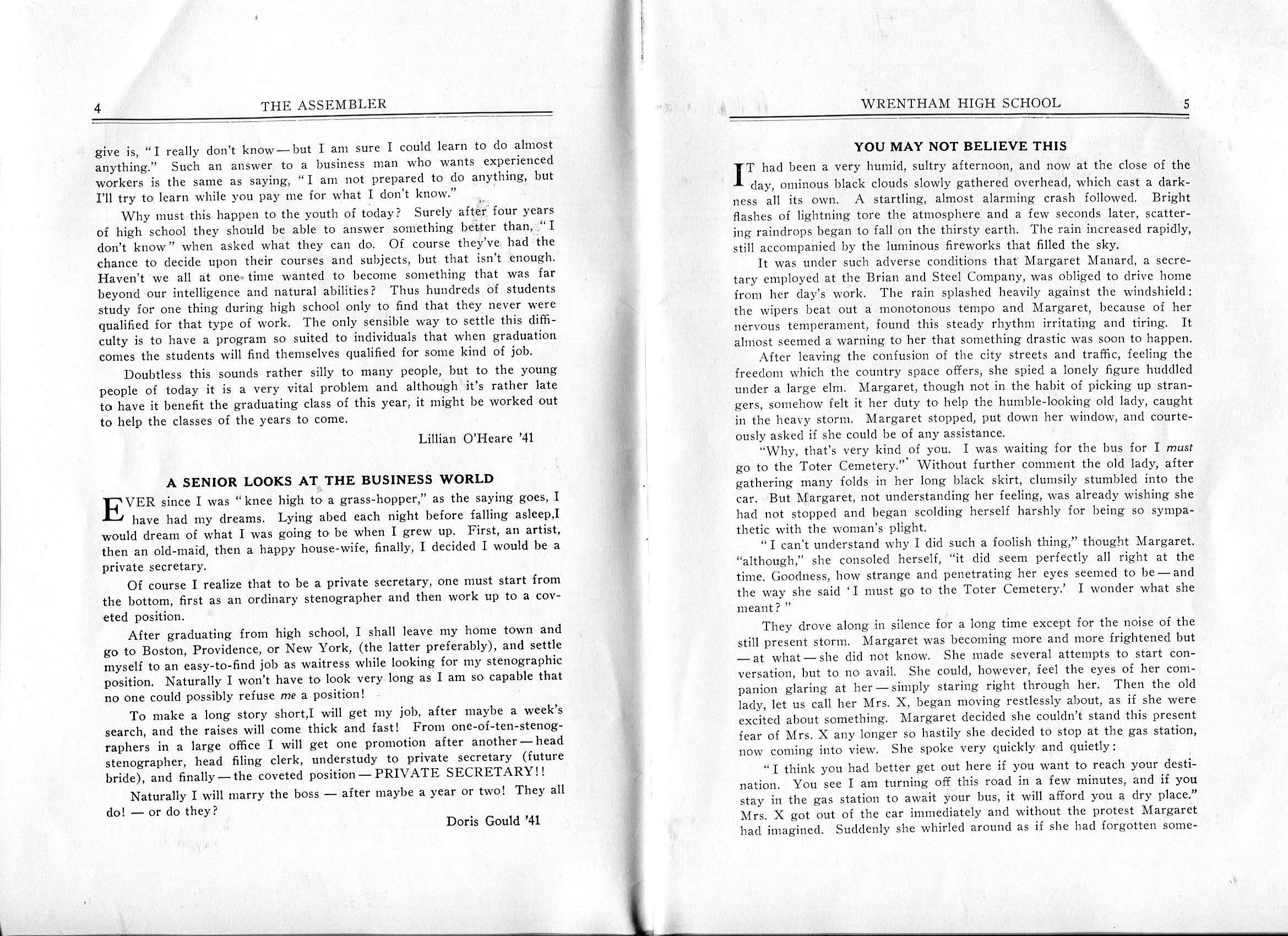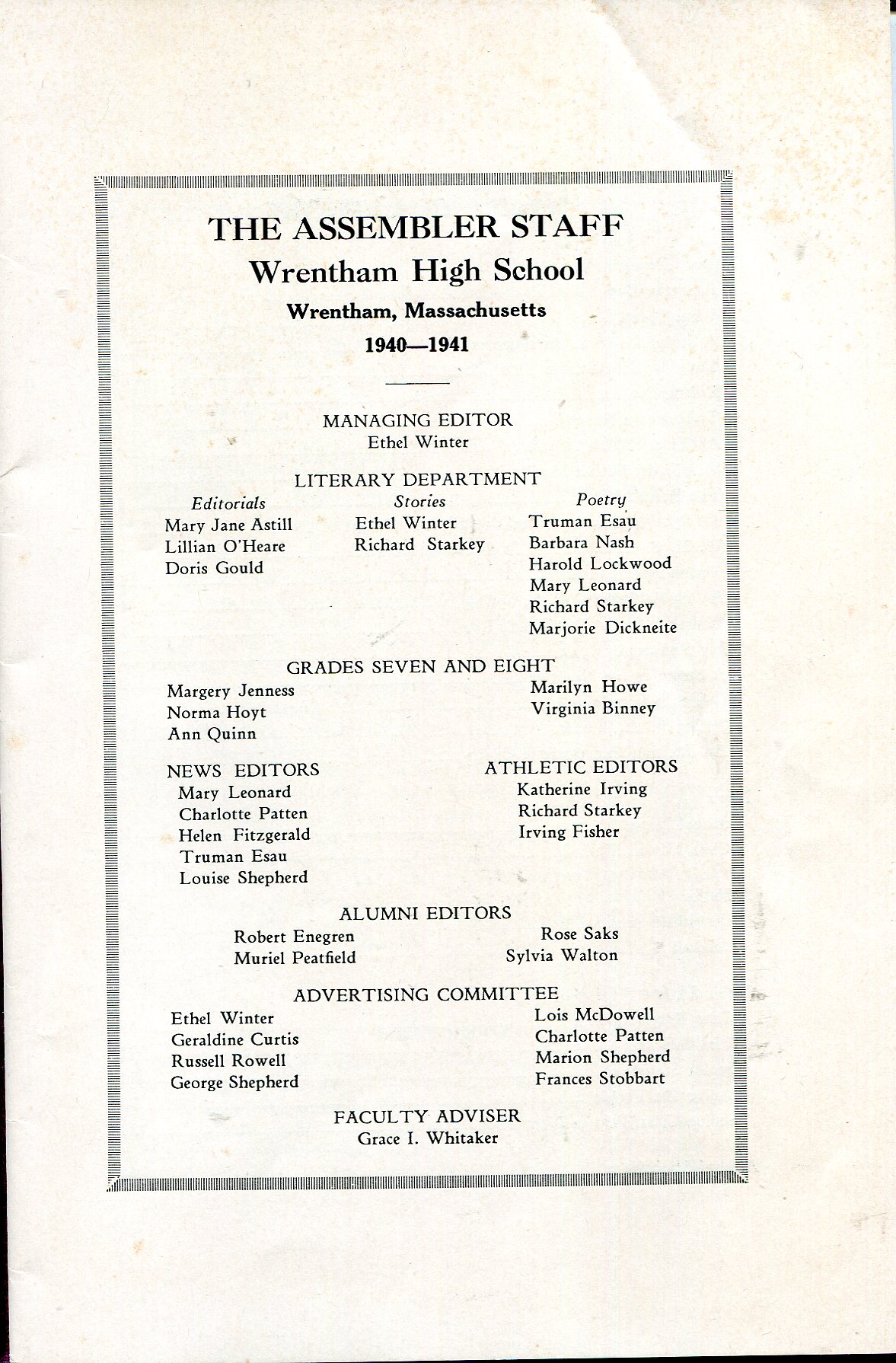 In addition to the 1941 Wrentham High School yearbook, we show below the graduating class from 1940.
