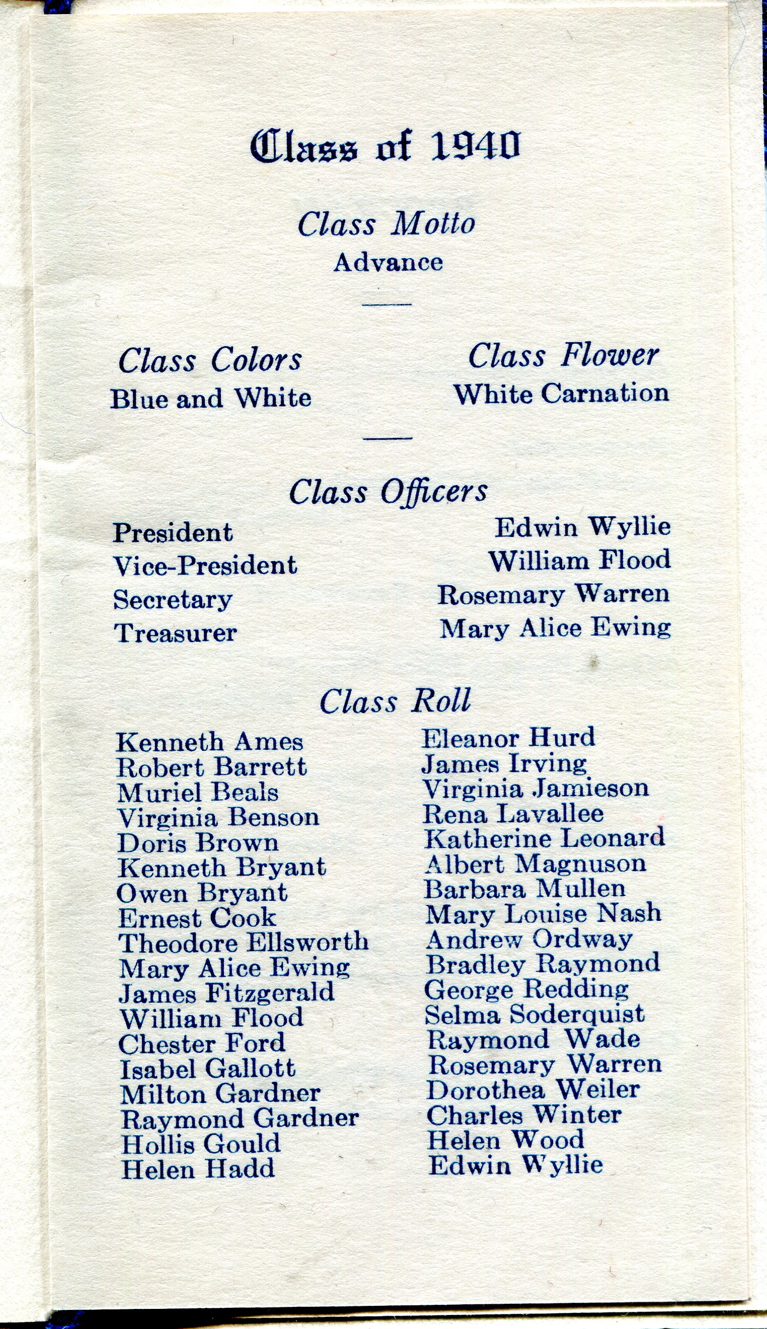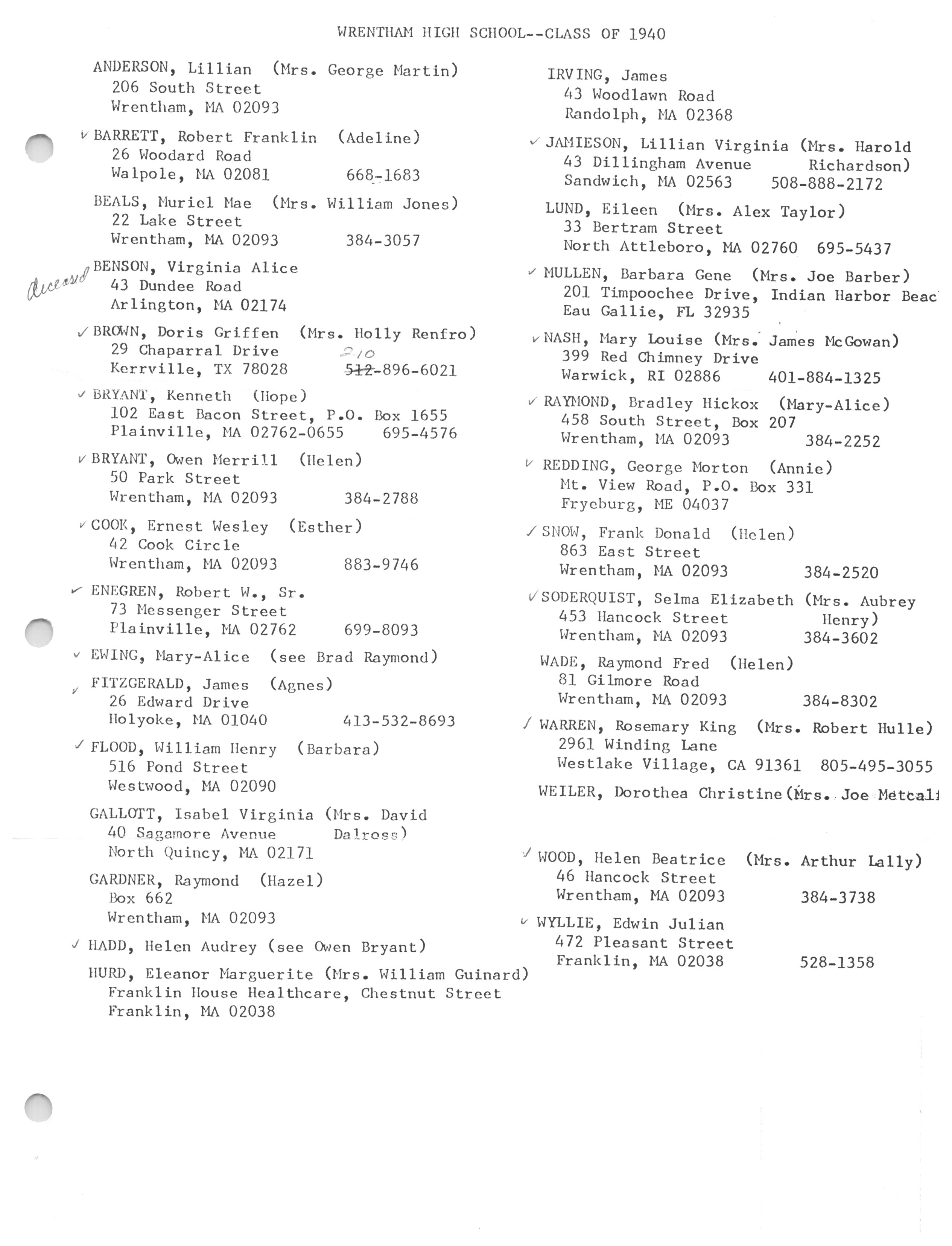 WRENTHAM HIGH SCHOOL--CLASS OF 1940