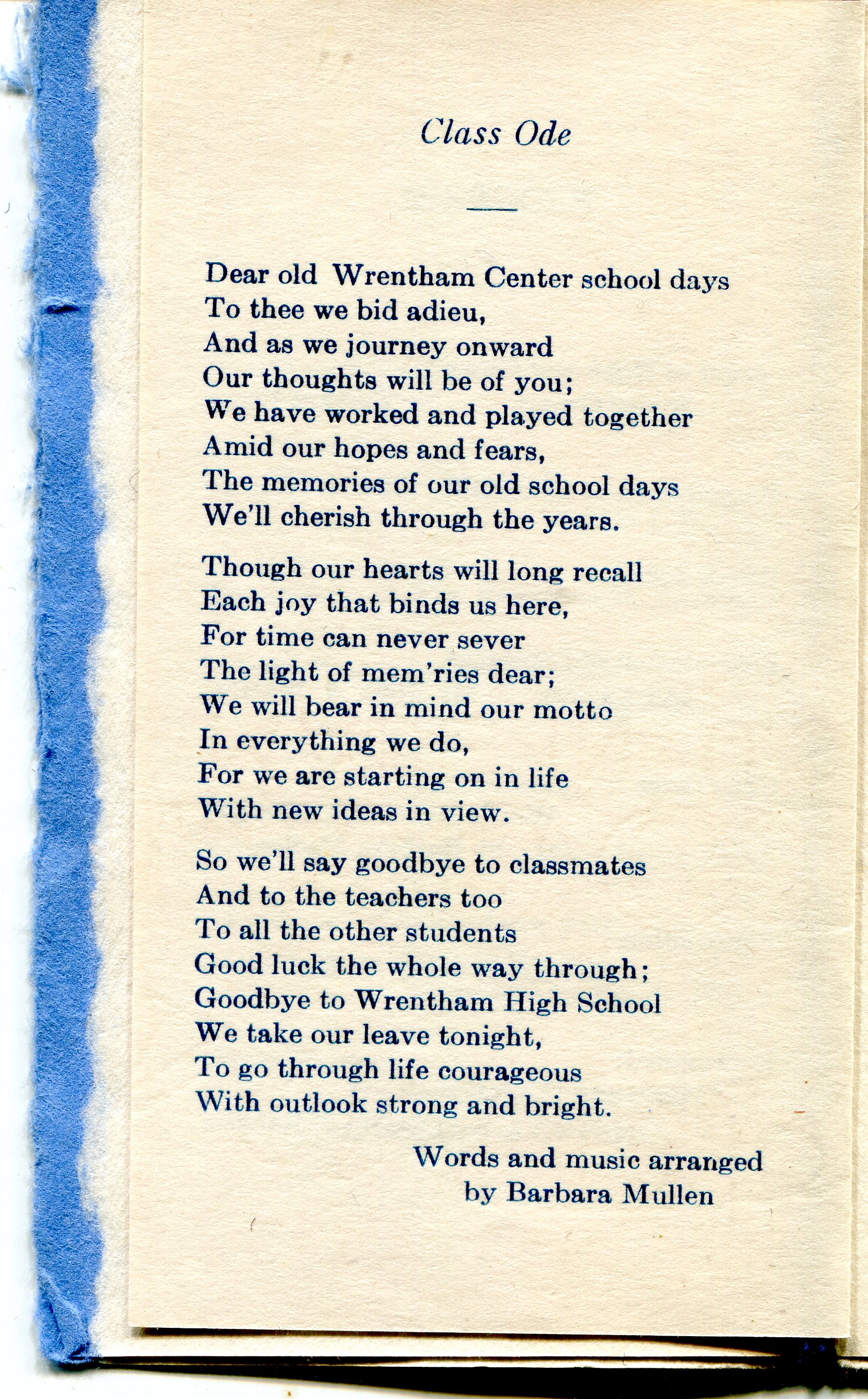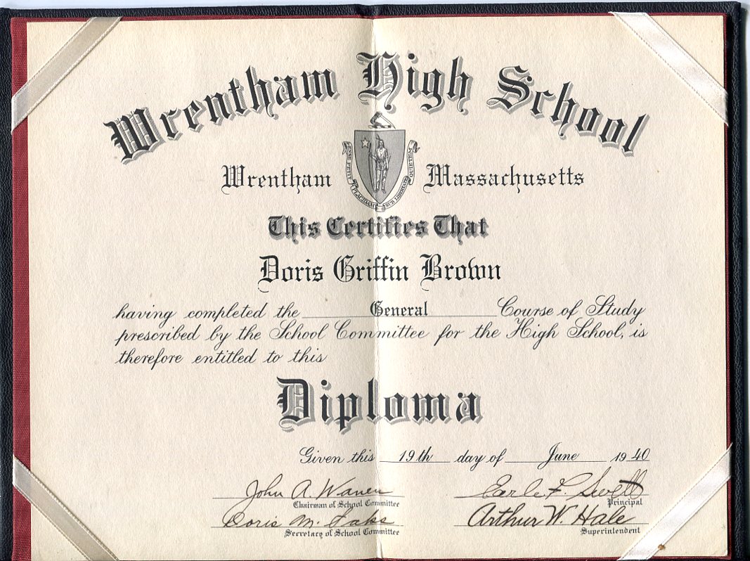 In 1940, Doris Brown graduated from Wrentham High School. We include here some of the class records and photos.